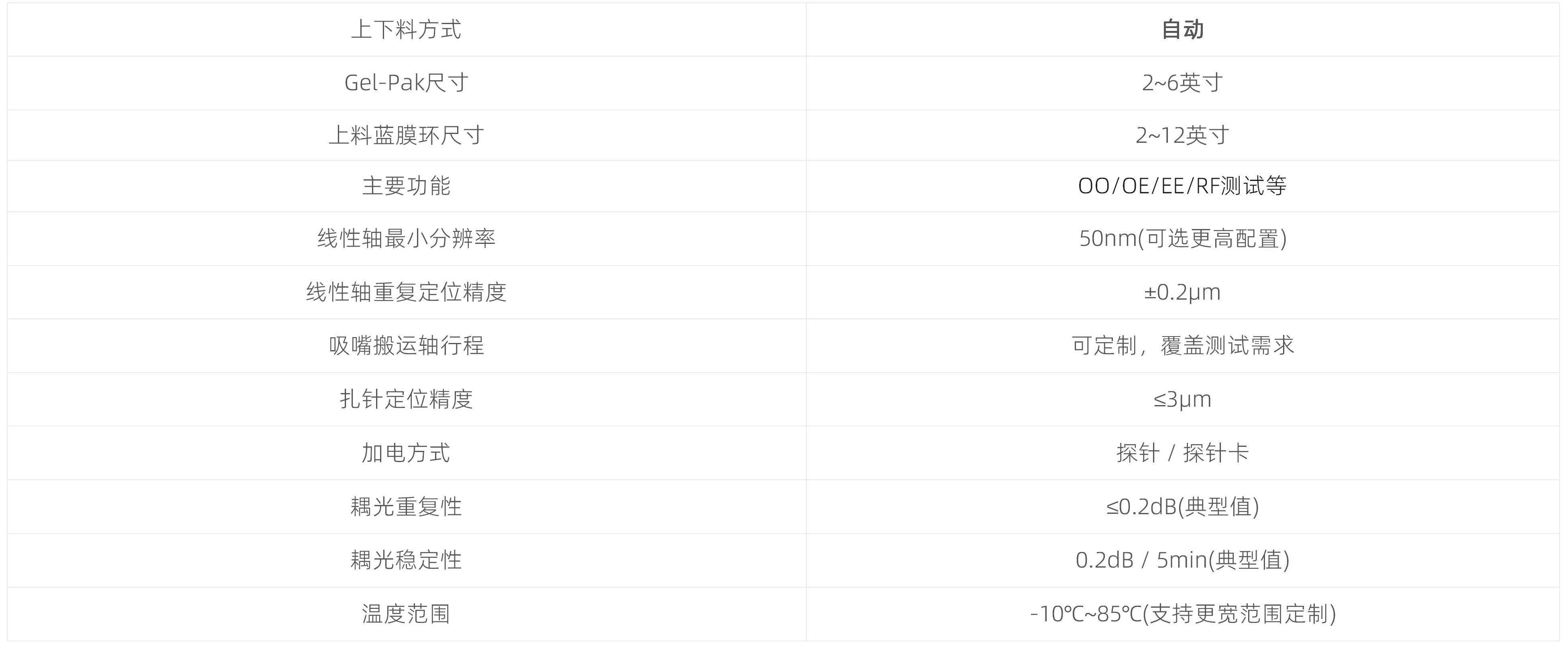 02支持上料後自動對(duì)光、加電測試後自(zì)動(dòng)下料
